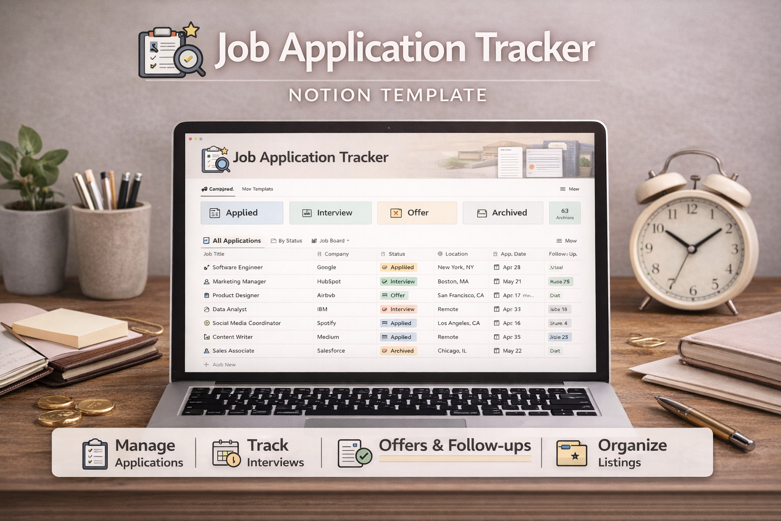 Track every job application from discovery to offer. Keep notes on interviews, follow-ups, and company research all in one organized workspace.