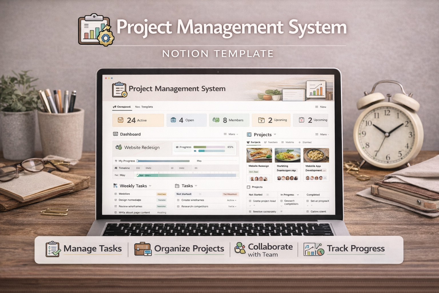 A comprehensive project management template inspired by tools like Asana and Monday.com, but built entirely in Notion. Perfect for teams and solo operators alike.